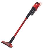 Einhell akumulatorski štapni usisivač TE-SV 18 Li-Solo dio je višenamjenskog i neograničeno kombiniranog Einhell Power X-Change akumulatorskog sistema. Za korištenje aku štapnog usisivača potrebna je baterija od 18 V. Neprekidan rad bez kabela: To je omogućeno sustavom izmjenjivih baterija Power X-Change i tehnologijom brzog punjenja. Ako je umetnuta baterija prazna, jednostavno se može zamijeniti za potpuno napunjenu. Ovisno o bateriji, može se postići i vrlo dugo vrijeme rada, jer baterija od 6 Ah, na primjer, osigurava usisavaču do 80 minuta energije u ECO načinu rada. Četiri LED svjetla i zglob na podnoj mlaznici, koji se može pomicati oko dvije osi, omogućuju jednostavno čišćenje, čak i tamnih i teško dostupnih mjesta kao npr. ispod kreveta ili ormarića. Gumirani kotači su tihi i štite osjetljive podne obloge poput parketa. Zahvaljujući svom kompaktnom i laganom dizajnu, aku štapni usisavač se lako drži i ne umara korisnika, čak i kada radite dulje vrijeme. To čini usisavanje vrlo jednostavnim poslom. Učinkovit trostruki filterski sustav koji se sastoji od predfiltera, zamjenjivog i perivog naboranog filtera i filtera motora i integriranog ciklonskog separatora osiguravaju čisti ispušni zrak i učinkovito usisavanje s velikom snagom. Spremnik za sakupljanje prljavštine jednostavno se prazni pritiskom na gumb, tako da dodatna vrećica nije potrebna. Time se štiti okoliš, štedi novac i također je vrlo higijenski, jer korisnik ne dolazi u dodir s prljavštinom. Usisavač se može prilagoditi svakoj situaciji pomoću dva podesiva usisna načina rada. ECO način rada može se koristiti za normalnu prljavštinu i za maksimalno vrijeme rada, dok način rada BOOST osigurava maksimalnu učinkovitost usisavanja za tvrdokornu prljavštinu, kao što je na tepisima. Zahvaljujući kombinaciji dva dizajna, aku štapni usisavač je praktičan 2-u-1 uređaj. Može se koristiti kao mali i lagani ručni usisavač, kao i za čišćenje podova, gdje oduševljava kao štapni usisivač sa savršenim rukovanjem. Motorizirana podna četka dizajnirana je za uklanjanje prašine i tvrdokorne prljavštine s tvrdih podova, tepiha i prostirki. Četka se također može lako odvojiti i očistiti. U isporuci je uključen i zidni nosač koji osigurava prostor za odlaganje usisavača i pribora, tako da je sve uredno pohranjeno, ali uvijek nadohvat ruke. Isporučeni fleksibilni nastavak za pukotine idealno je prikladan za usisavanje na teško dostupnim mjestima, na primjer između sjedala u automobilu. Jedan pritisak na prekidač za uključivanje dovoljan je da usisavač radi neprekidno. Prekidač za uključivanje ne mora biti stalno pritisnut. Isporuka akumulatorskog štapnog usisivača ne uključuje bateriju ili punjač, ali su dostupni zasebno.